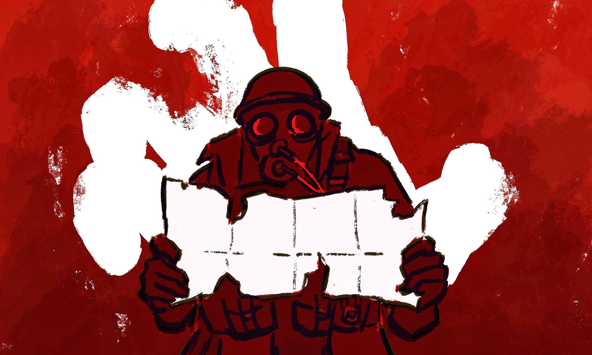 Mad God follows a very simple narrative. An assassin travels a hellish world (similar to a Hieronymus Bosch painting, but sandblasted and covered in mud) to reach his destination. He encounters monsters of all kinds, ravaged debris ridden lands, and corpses of long dead things. The assassin’s goal is initially unclear, as is any explanation as to how this nightmare world came into being. Some elements are explained in environmental storytelling while others are completely left to interpretation. To put it as reductively as possible, Mad God follows a character walking from one end of the screen to the other while horrible monstrous things occur around him. This chaos conjures memories of the first image of the entire film; a tower being assaulted by soldiers as lightning strikes it. It is undeniably a visual reference to the tarot card “The Tower” which depicts The Tower of Babel being struck by God’s lightning, descending the world into chaos by scattering people around the world and giving them different languages so they can not understand each other.
